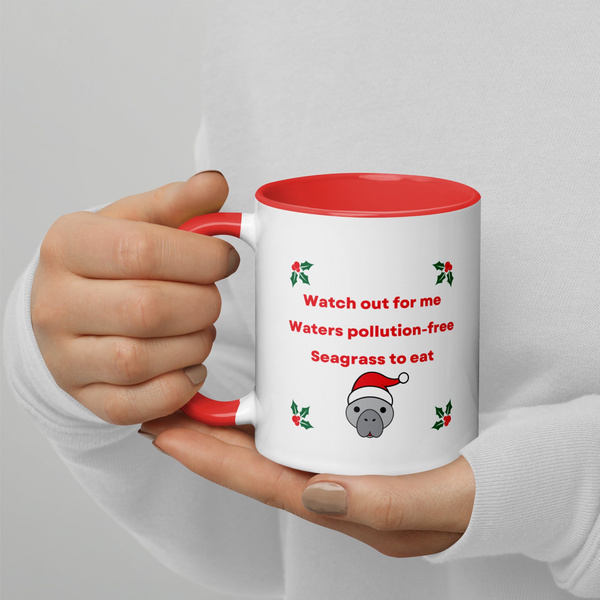 Manatee Holiday Wishes Christmas Ceramic Mug with Color Inside