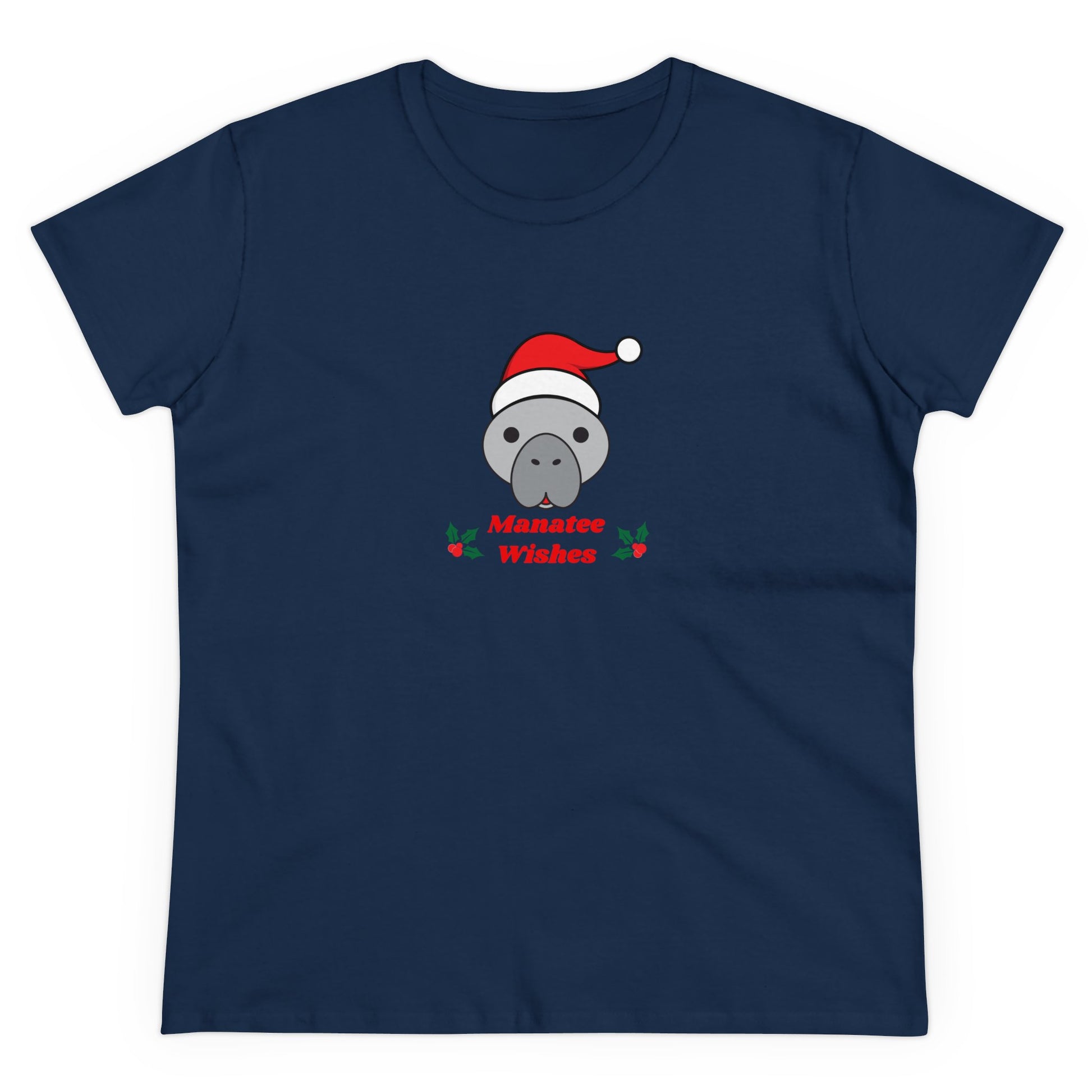 Manatee Holiday Wishes Christmas Adult Women's Cotton T Shirt