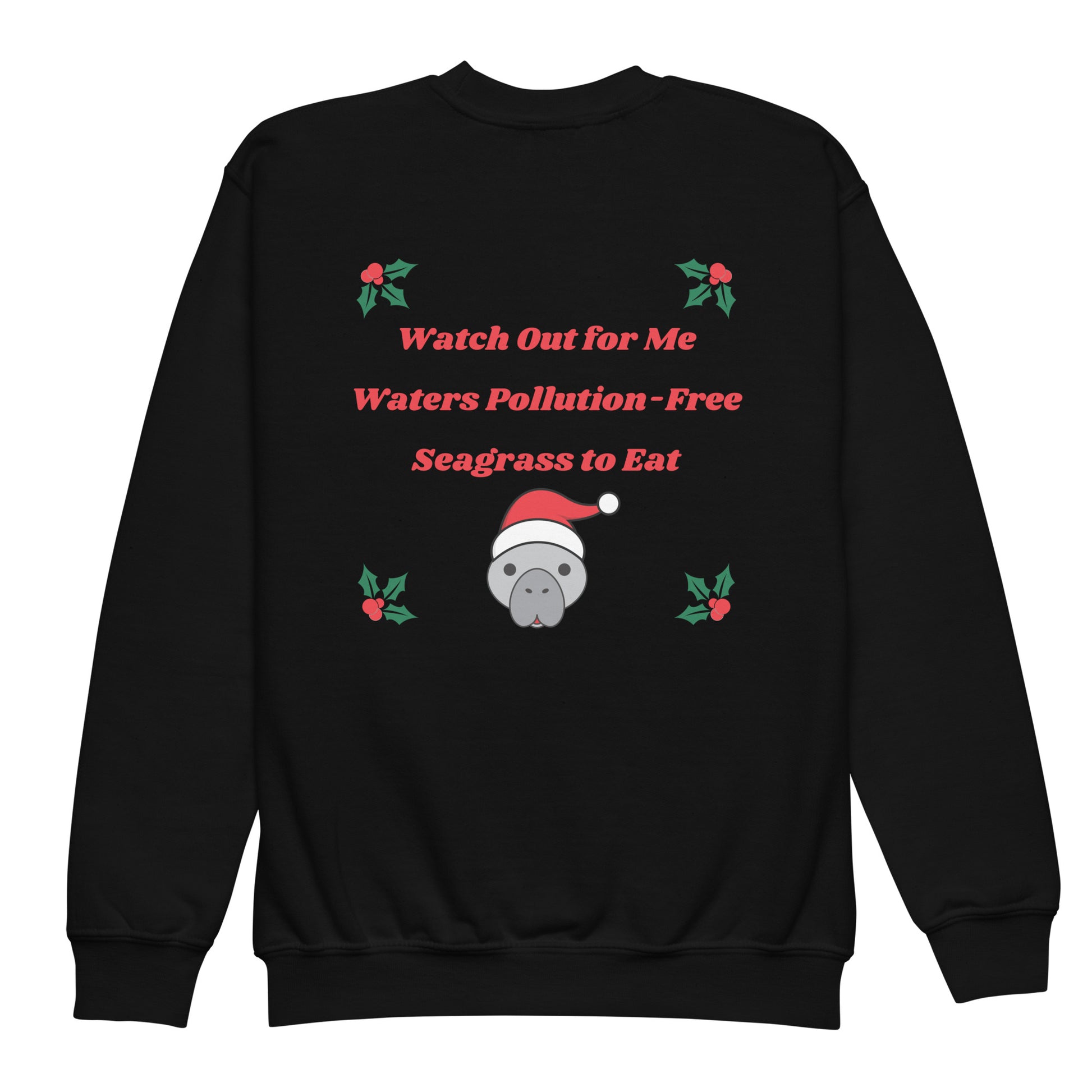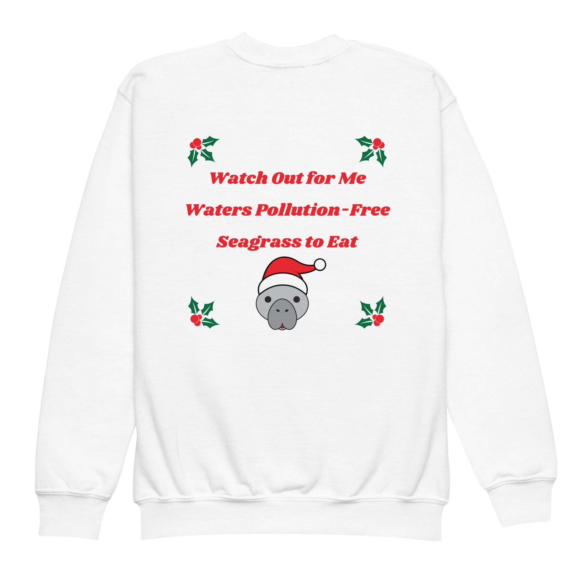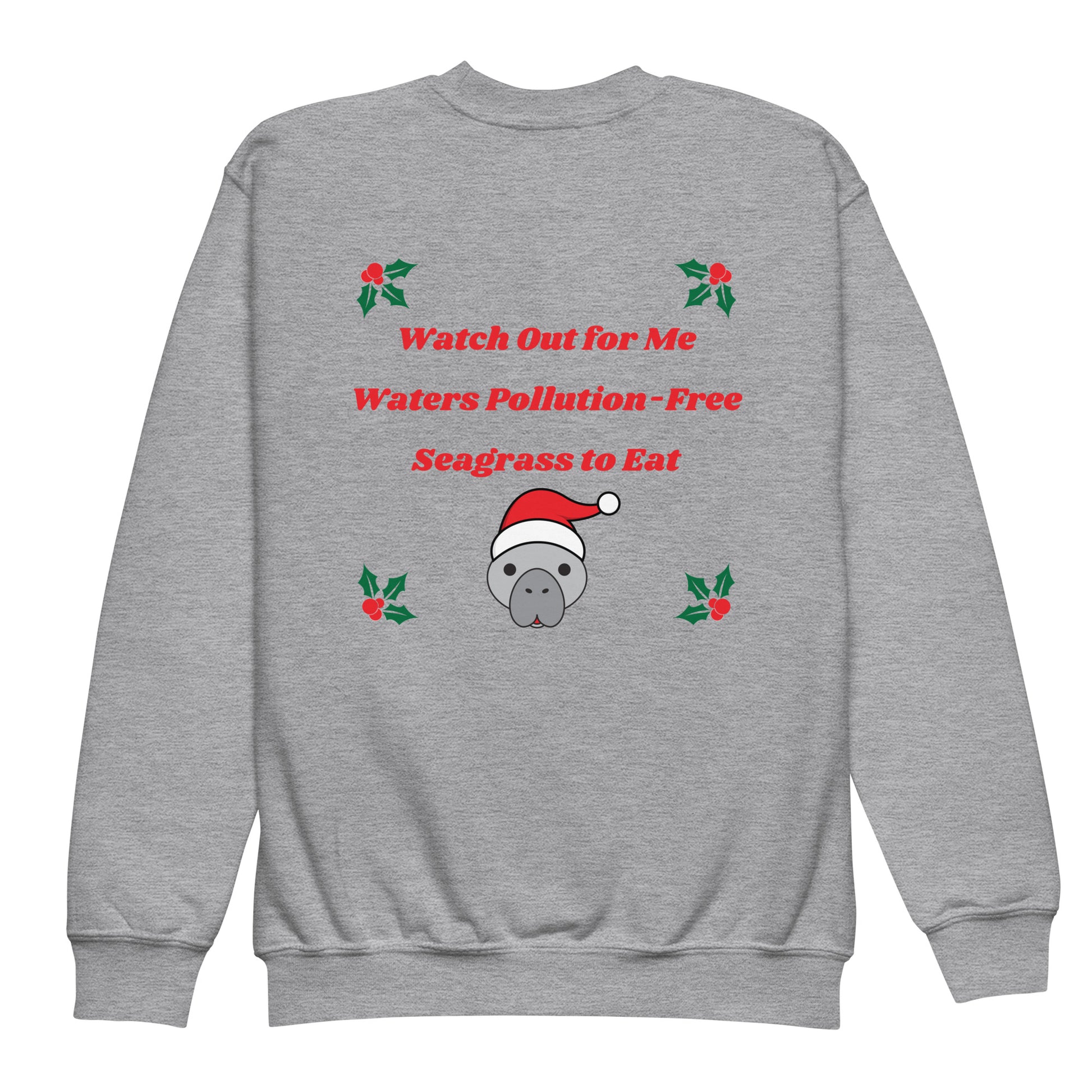 Spread Holiday cheer in this manatee unisex graphic kids sweatshirt! Featuring a front and back manatee themed graphic print, this cozy and cool sweatshirt helps drive awareness of manatee protection and conservation. Your little one will enjoy sharing this important message throughout the Holidays. Made from soft fleece fabric, this youth crewneck sweatshirt is designed for every adventure and is easy to take care of. Makes a great Holiday gift for the young manatee lover in your life!