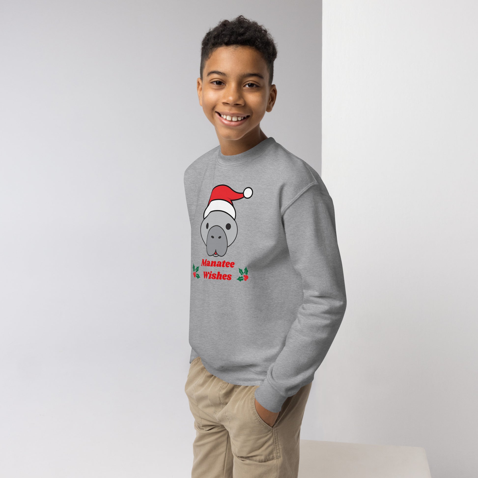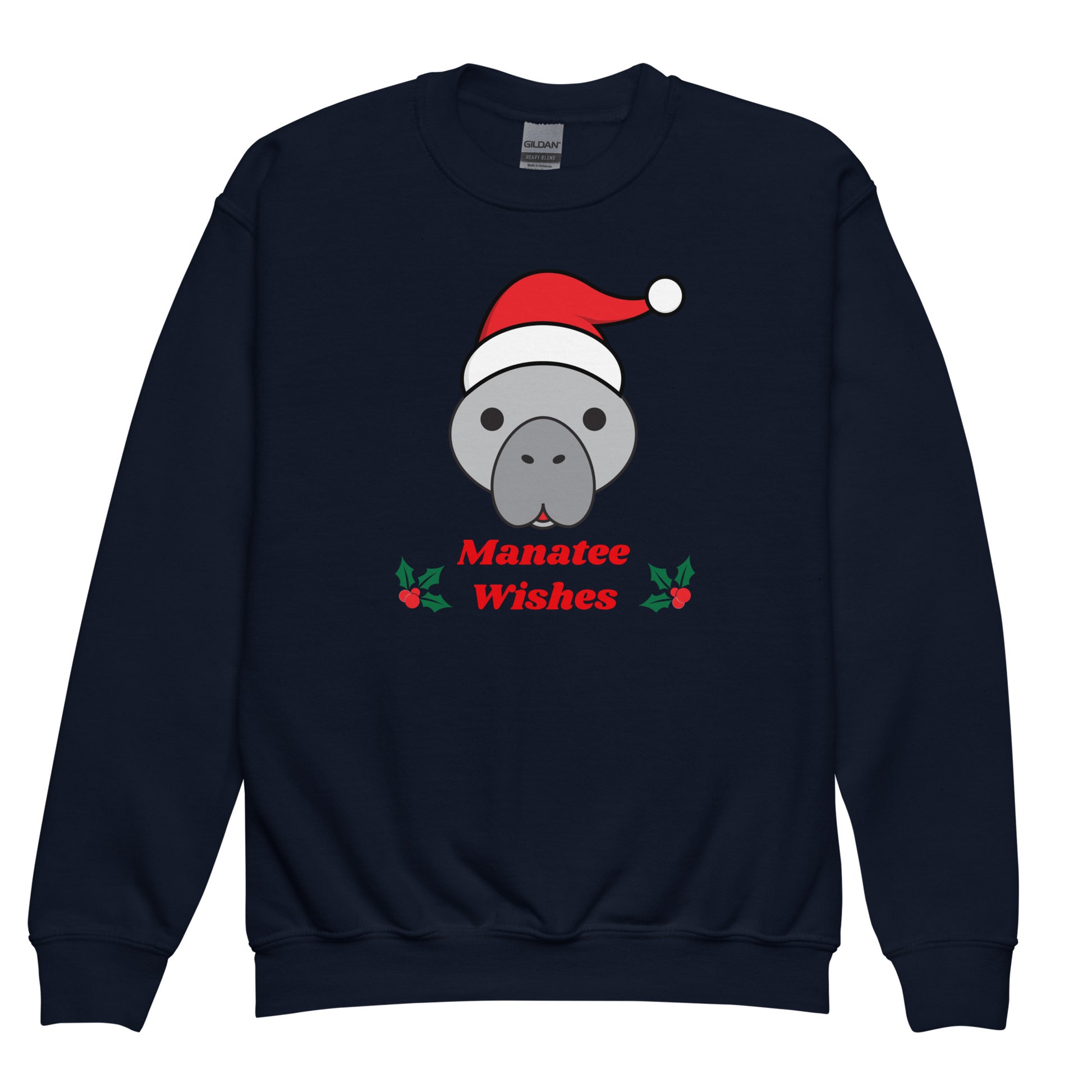 Manatee Holiday Wishes Christmas Kids Graphic Crewneck Sweatshirt