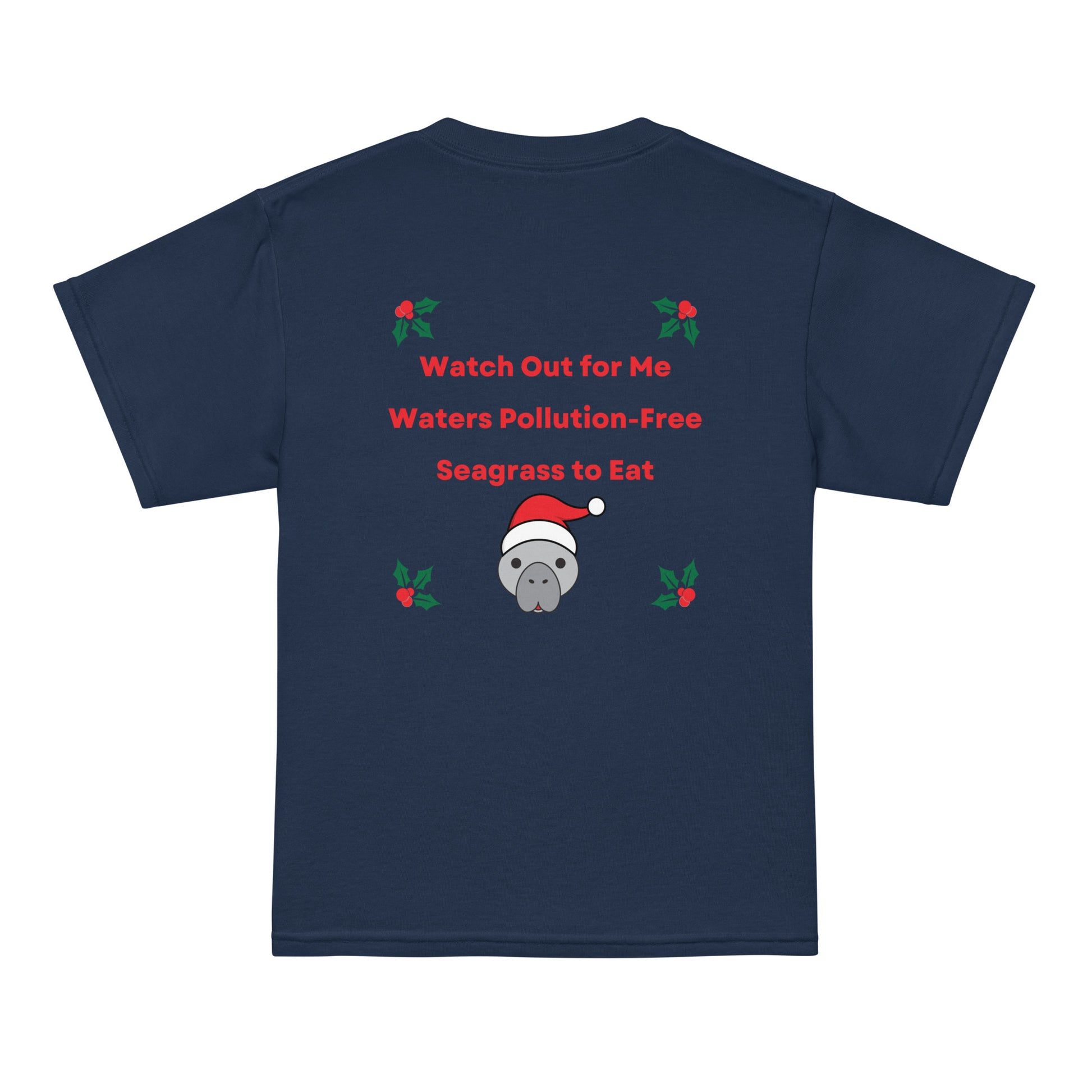Spread Holiday cheer in this manatee graphic kids shirt! Featuring a front graphic manatee in a santa hat print, with messages promoting their survival on the back, this kids manatee shirt helps raise awareness of manatee protection and conservation. This youth manatee shirt helps keep kids cool and comfortable with moisture-wicking fabric. Its modern fit and high-performance fabric make it a perfect choice for active days. Help spread this important message in this cool manatee graphic youth shirt throughout the Holidays. Makes a great Holiday gift for the child manatee lover in your life!