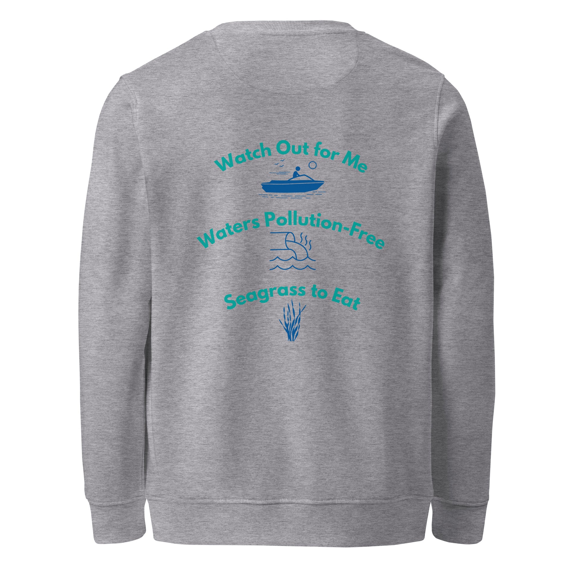 Help spread awareness for manatee protection and preservation in this high quality sustainable adult unisex embroidered sweatshirt. Featuring a well-designed manatee embroidery on the front with a graphic on the back promoting their survival, this comfy manatee sweatshirt will quickly become one of your faves. This eco manatee sweatshirt features a 100% organic cotton exterior making it super comfy to wear year-round. A great gift for yourself or the manatee lover in your life!
